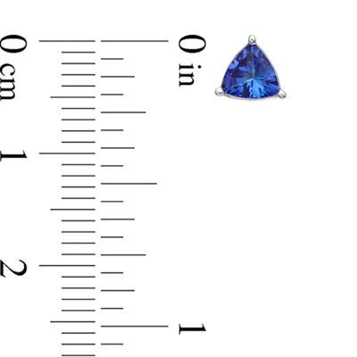Present day and advanced, these tanzanite stud hoops are a stunning look at whatever time. Designed in smooth 10K white gold, every hoop highlights a 5.0mm trillion-cut violet-blue tanzanite in a strong three-prong setting. Cleaned to a splendid sparkle, these post studs secure easily with screwbacks.